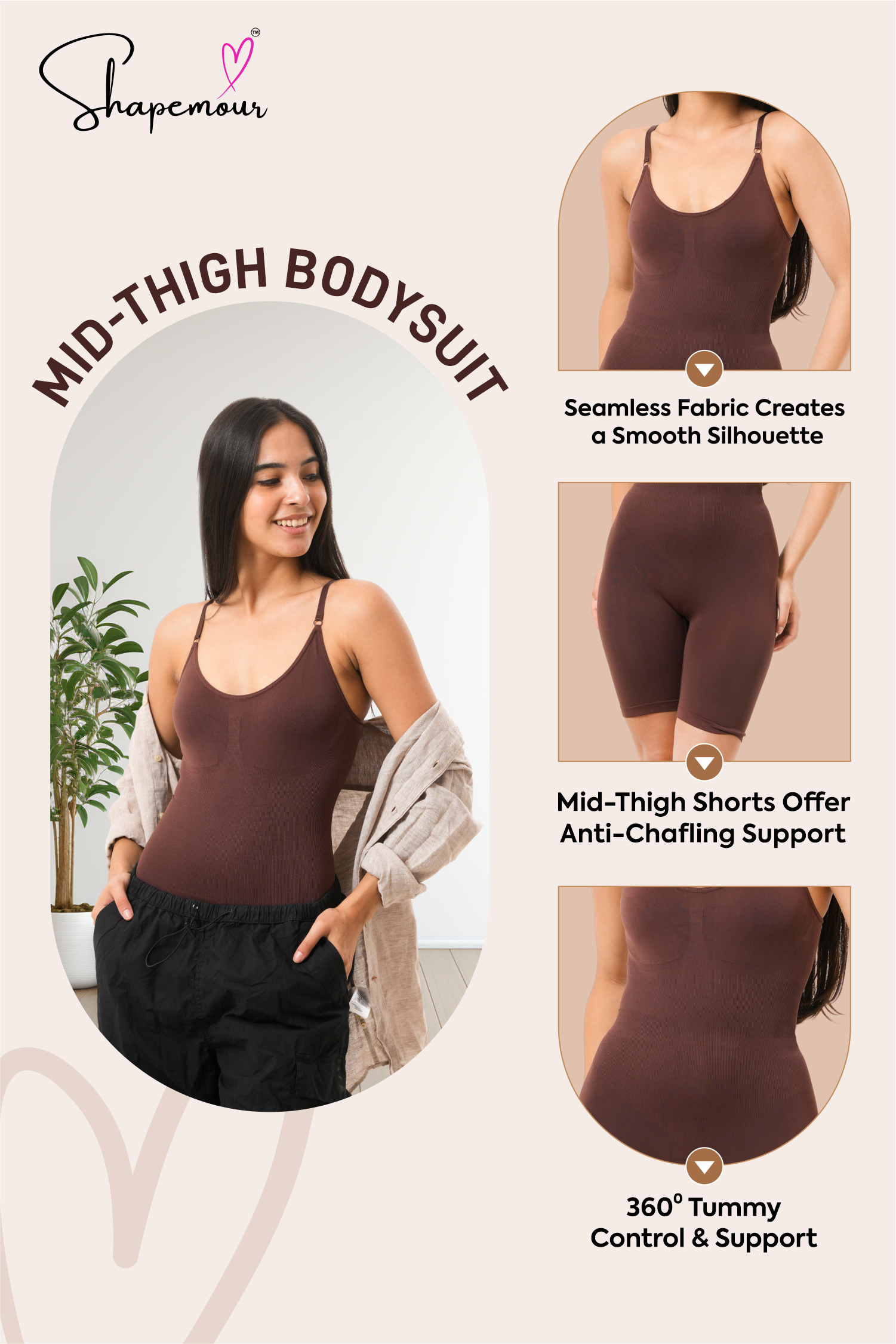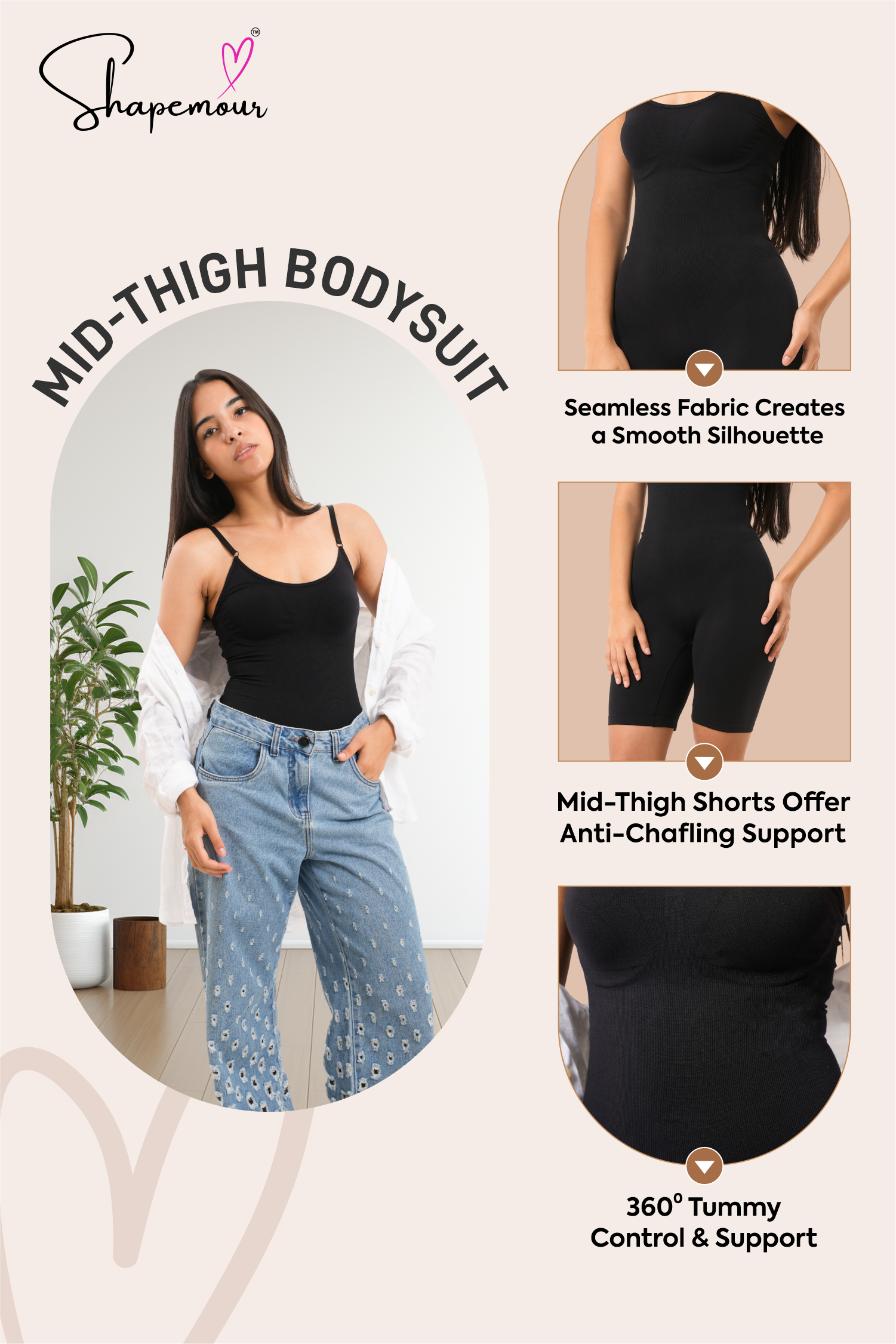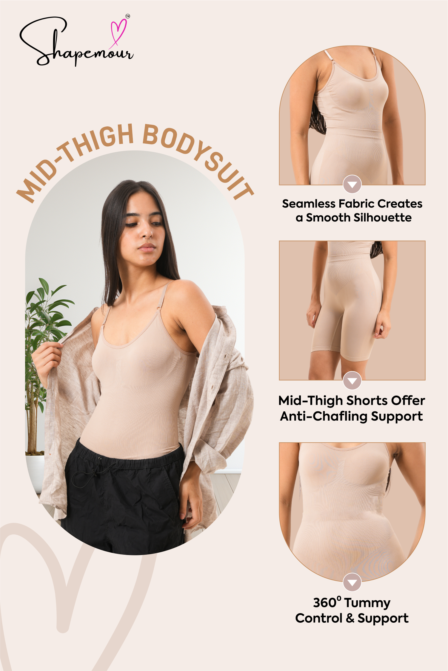 SHAPEMOUR Mid Thigh Bodysuit Bodyshaper
