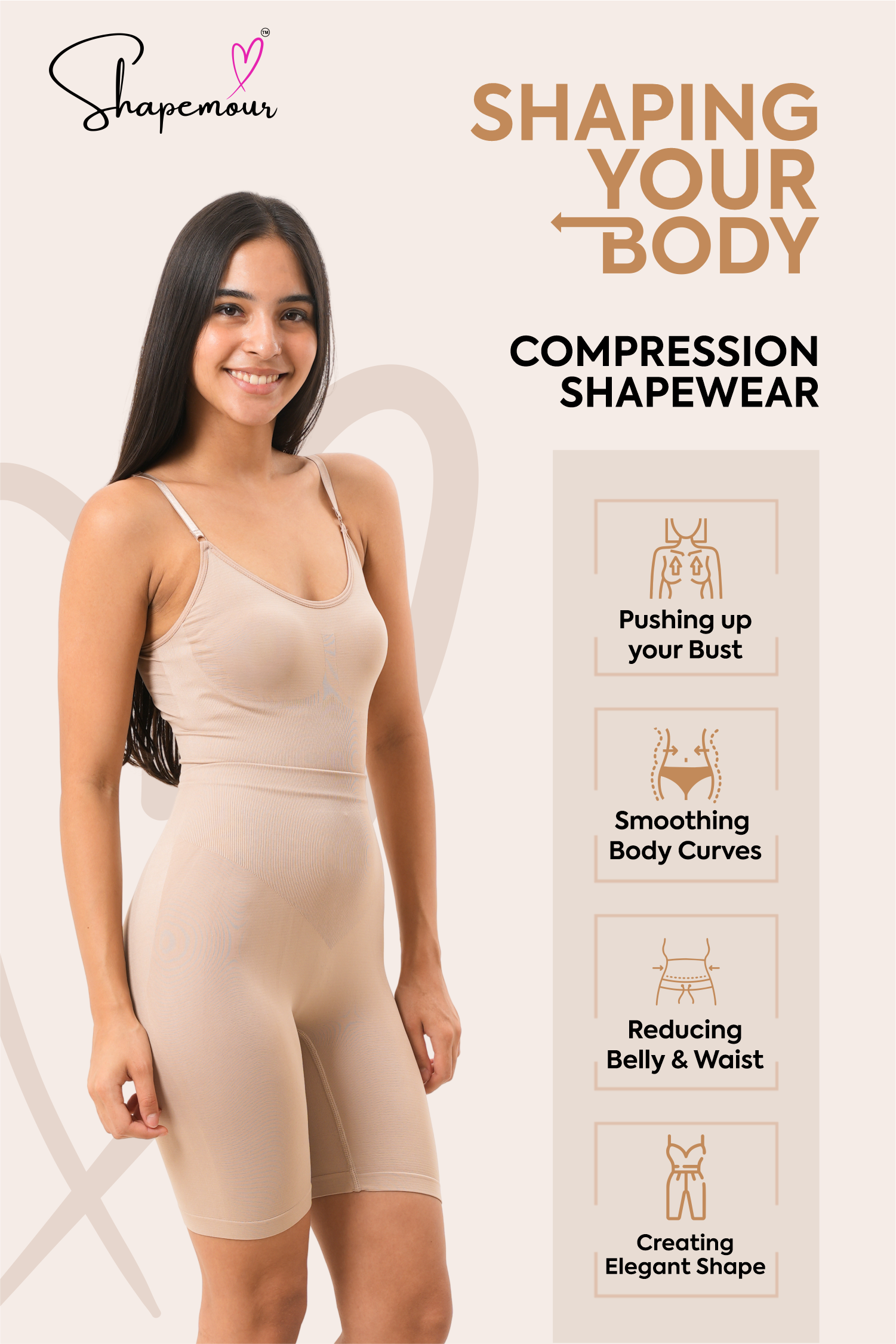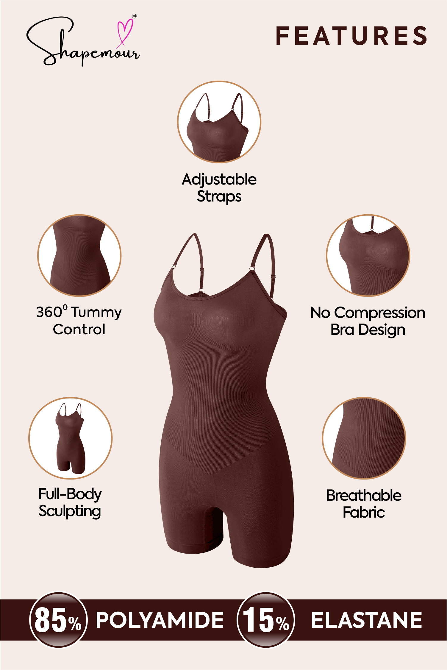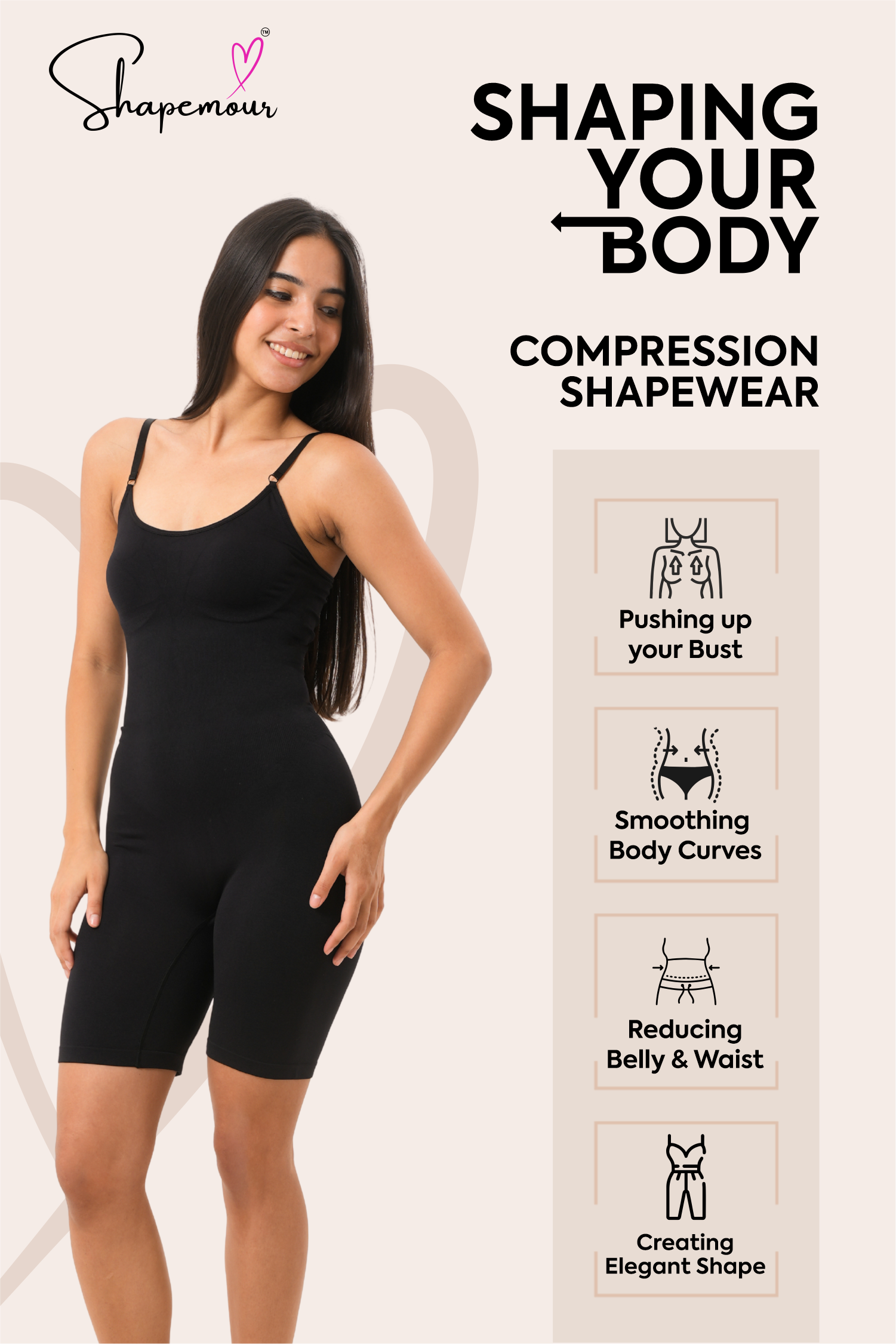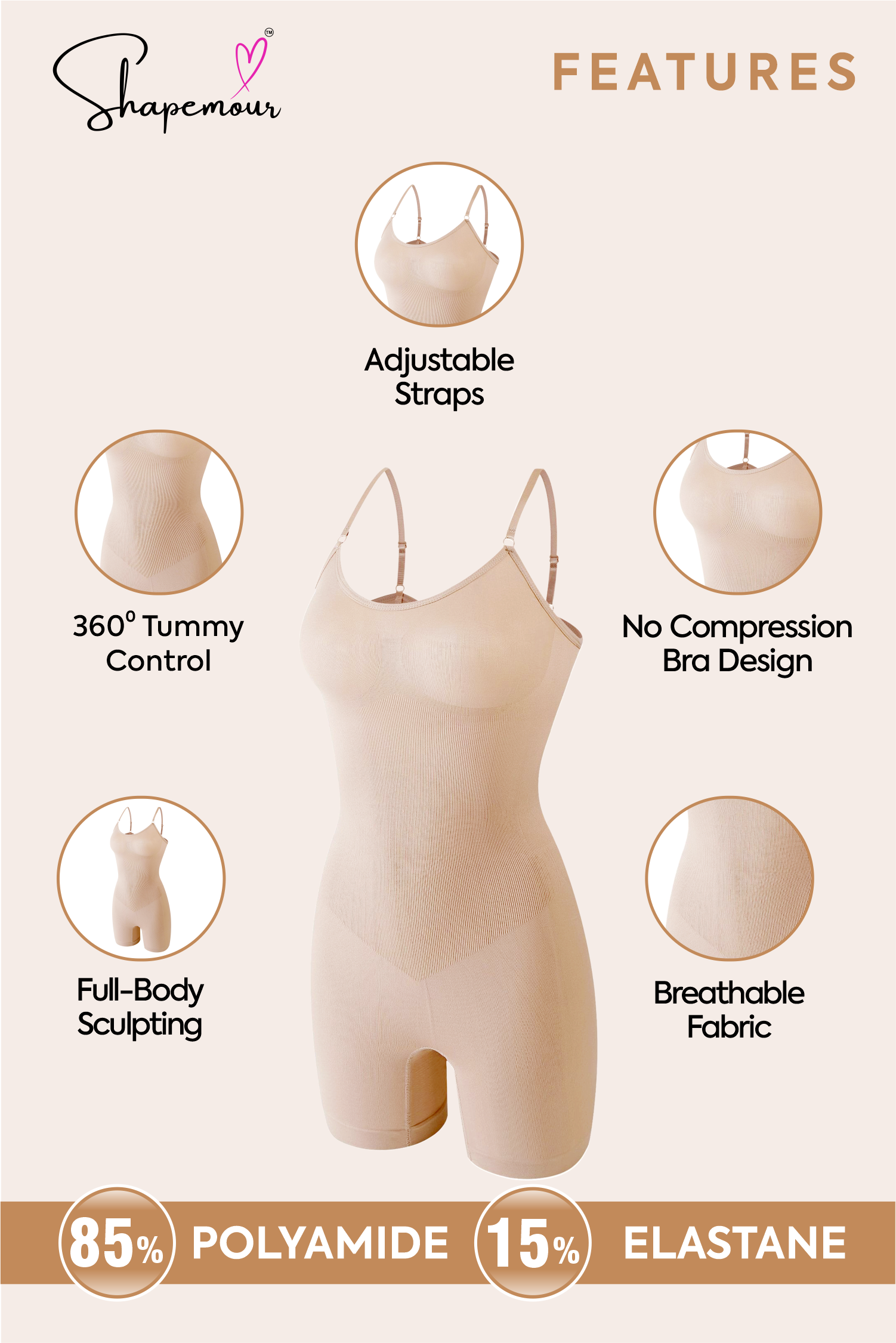 SHAPEMOUR shapewear is designed with a second-skin fit that combines comfort and effective compression. It’s crafted from breathable, stretchable fabric that moves with your body while providing all-day support. Unlike many shapewear products, it stays in place without rolling or bunching.
